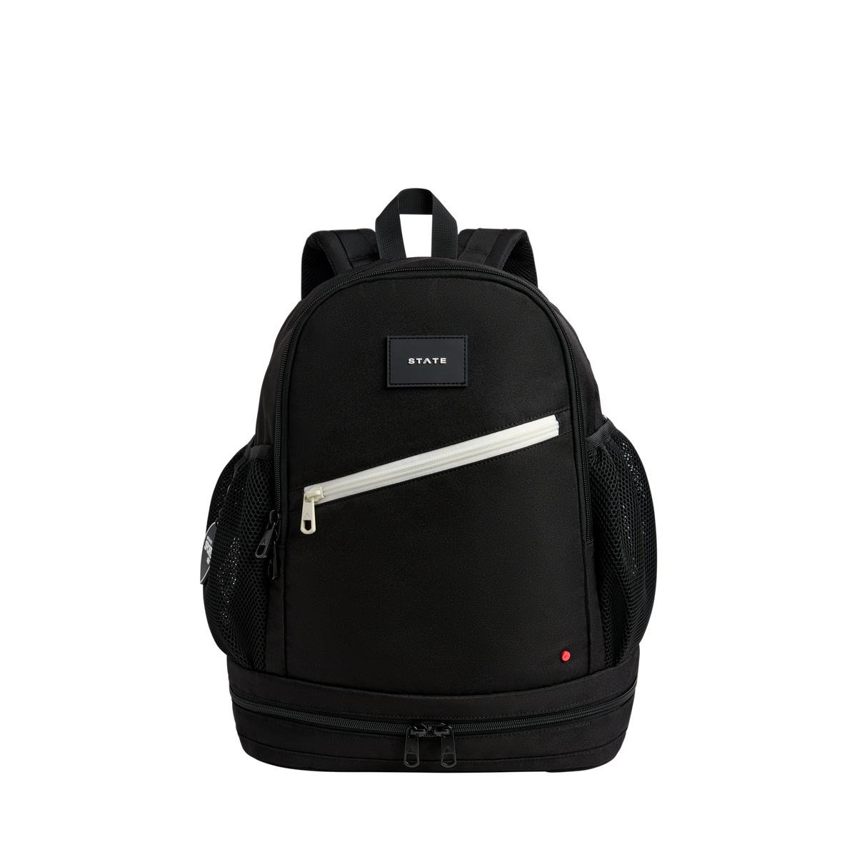 Zippered bottom pocket with an exterior mesh panel keeps cleats separate from clean gear. Fits up to men's size 12.