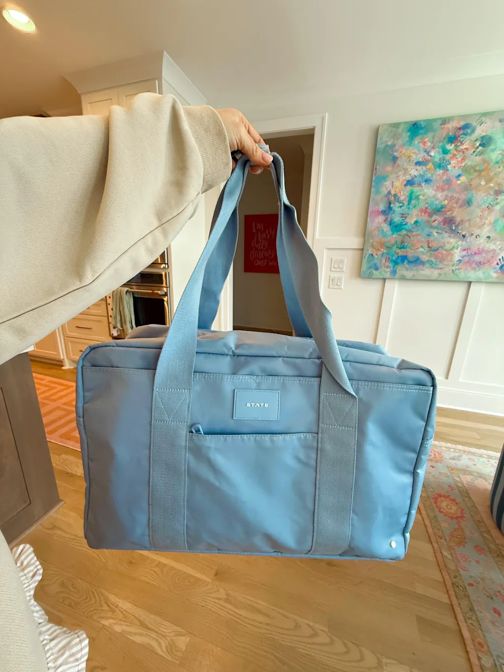 This bag is the perfect size for a weekend getaway, to take the gym, or to squeeze some extra clothes when my checked luggage is full lol! Love it and take it on every trip with me!